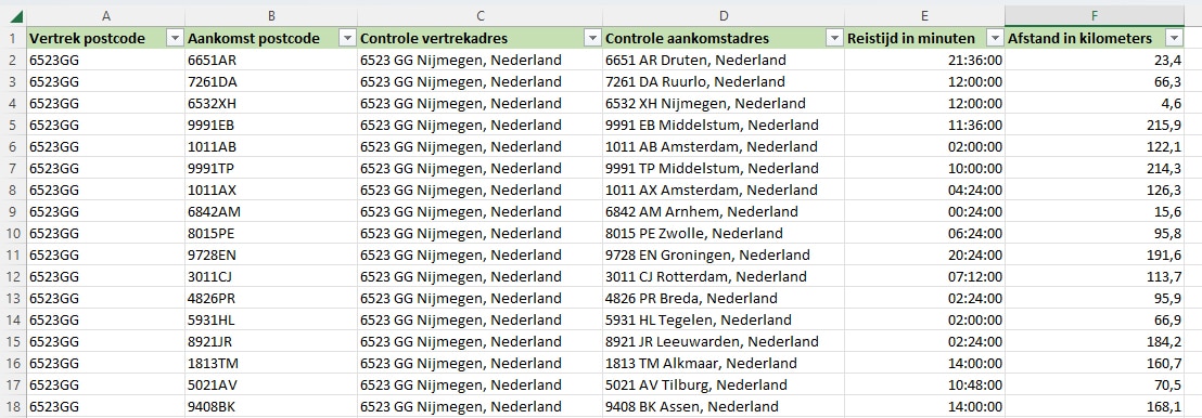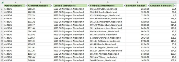 - Reistijden en reisafstanden van alle 4PC postcodes naar alle 4PC postcodes in Nederland